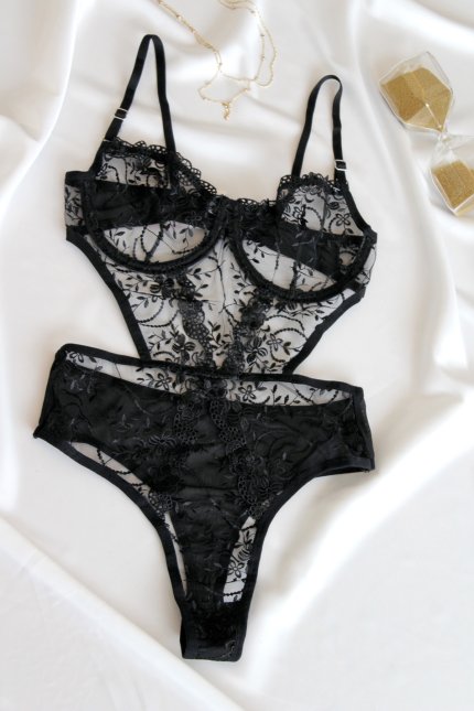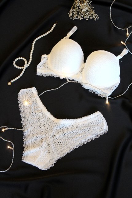 Beyaz Balenli Dantelli Transparan İç Çamaşırı Takımı
